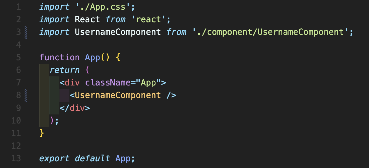 Step 2: App.js 파일을 수정해서 UsernameComponent를 추가합니다.